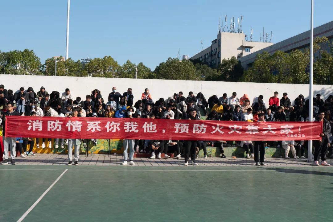 本次活动由后勤保卫处常务副处长王曙光老师主持,江夏区消防救援大队纸坊站站长李秋实,纸坊街派出所警官陈烨,学校党委书记高芸,党委副书记、副校长郭霖,校长助理郭万春,相关职能处室负责人以及各学院党总支书记、辅导员,各单位安全管理员、实验员、学生代表,各楼栋管理员以及食堂餐厅员工、商户代表、创业基地代表以及校维会成员共1000多人参加了此次活动。