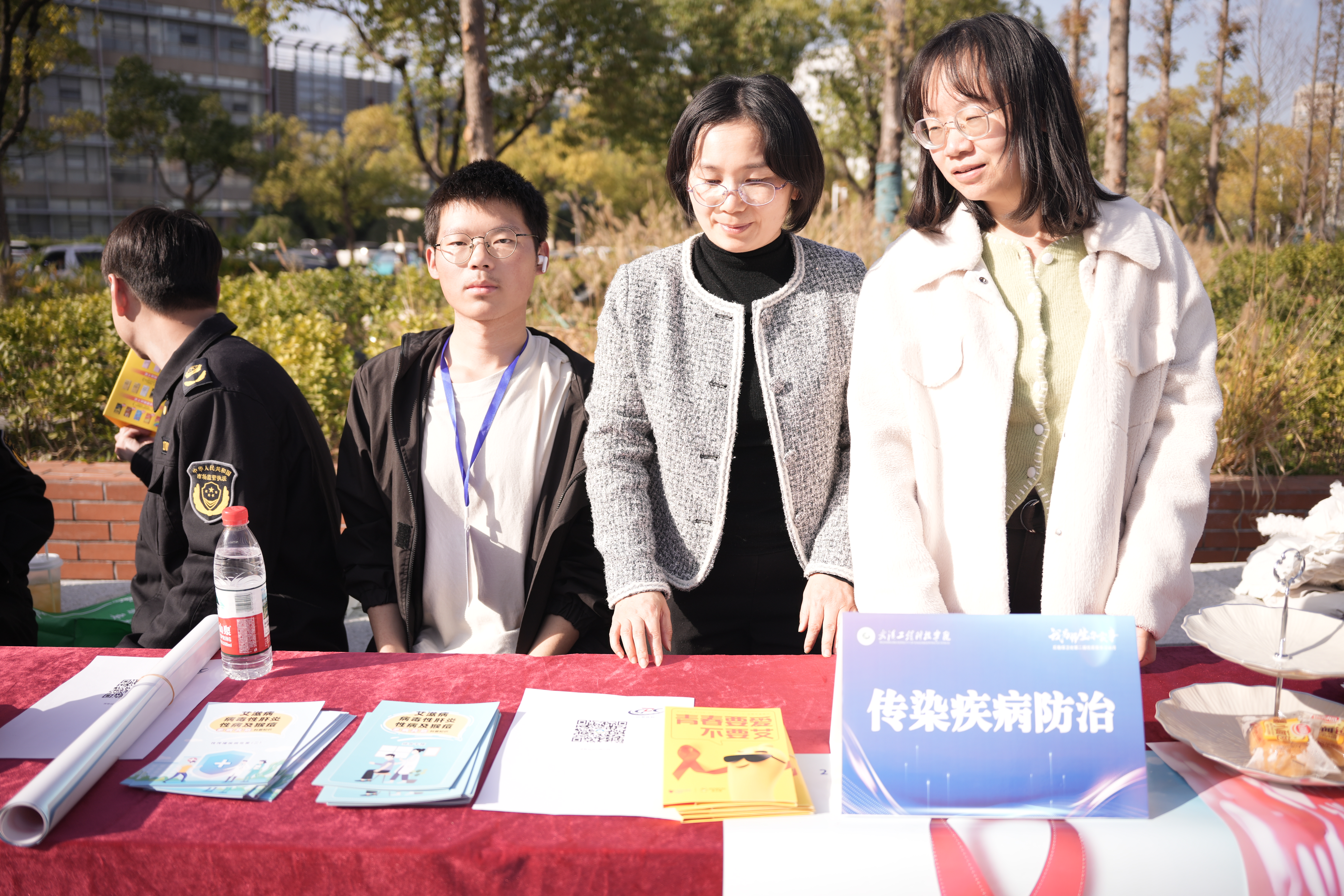 防骗反诈、消防安全、食品安全、传染病防治各主题宣讲咨询台前师生簇拥而至。