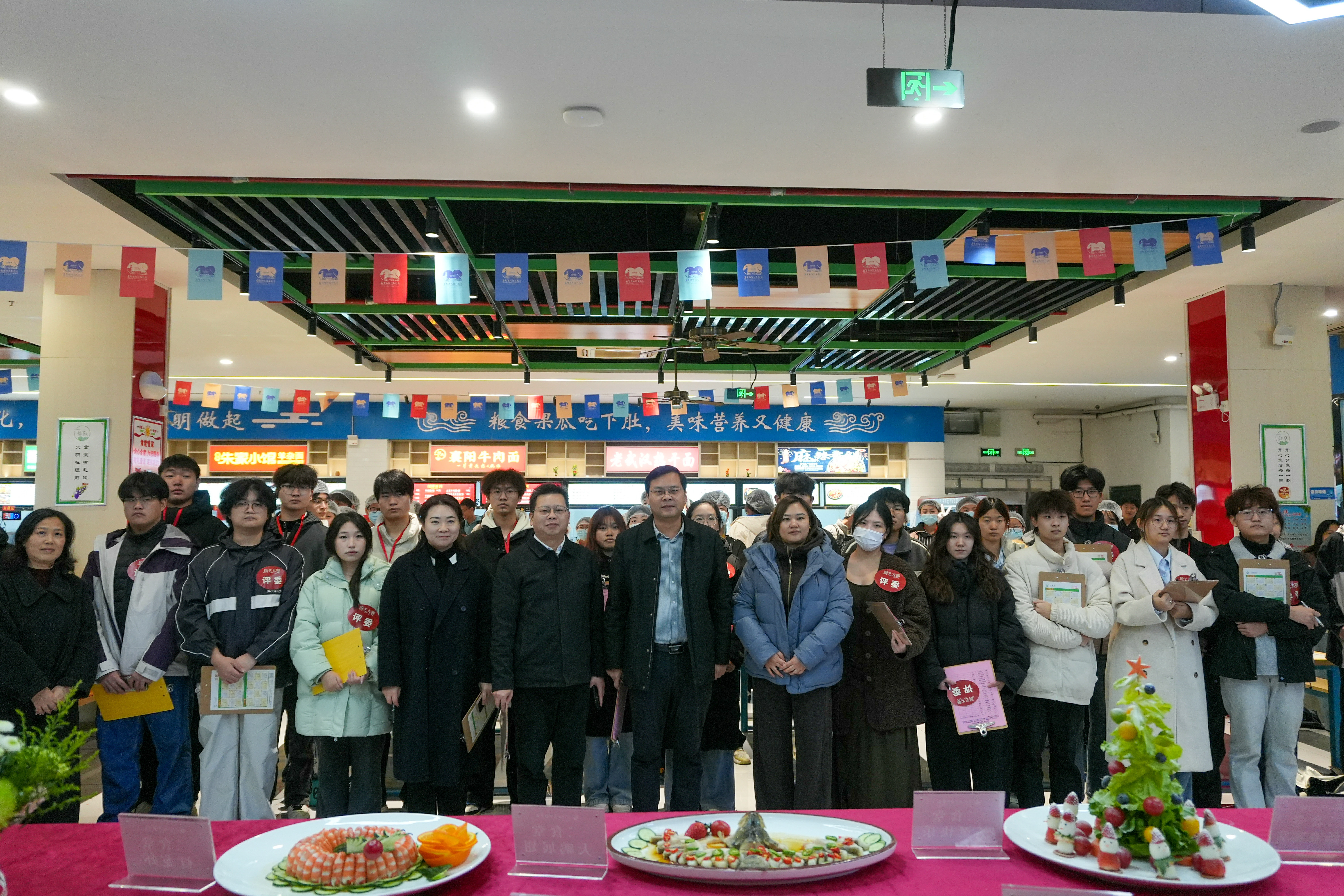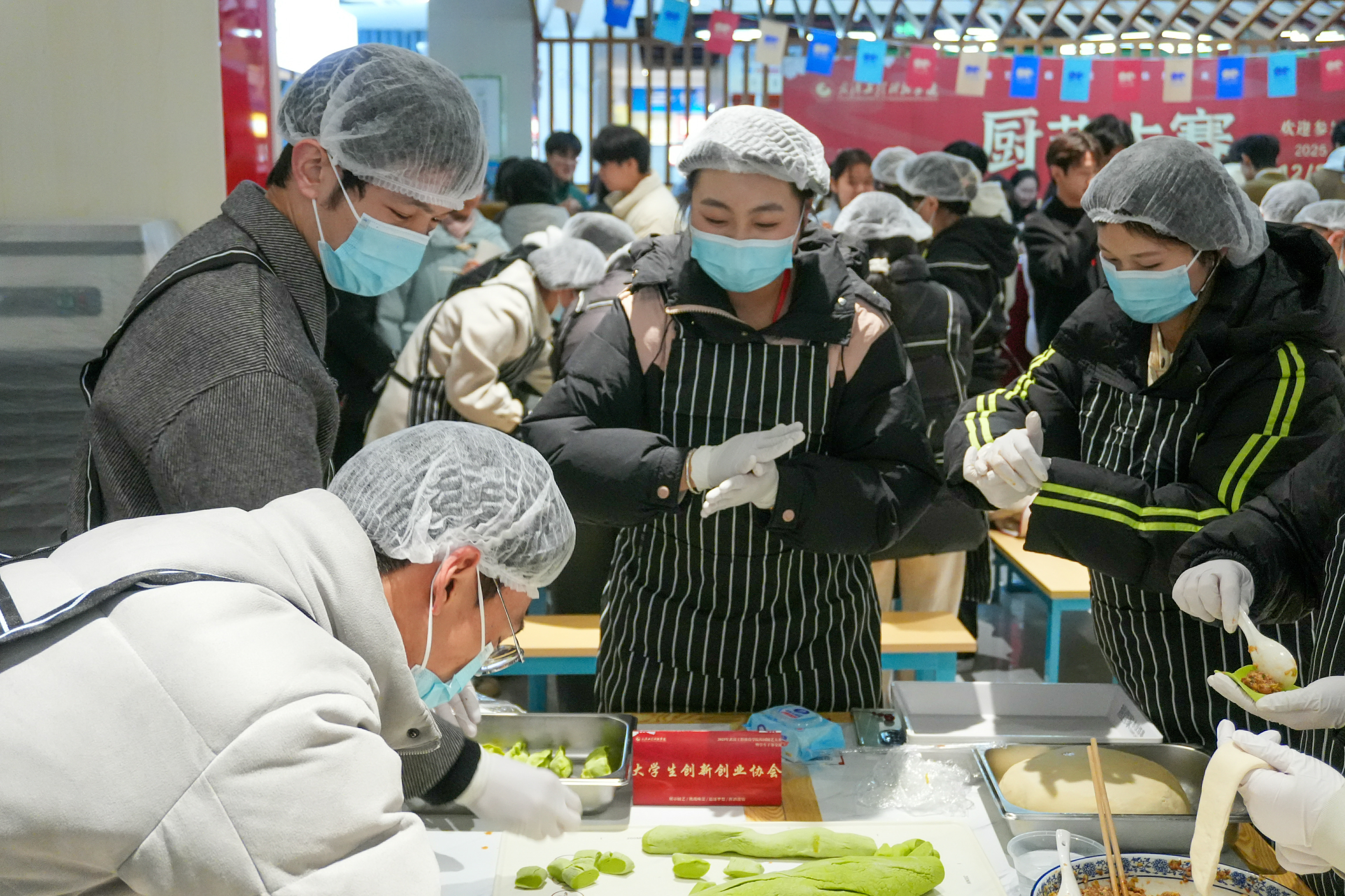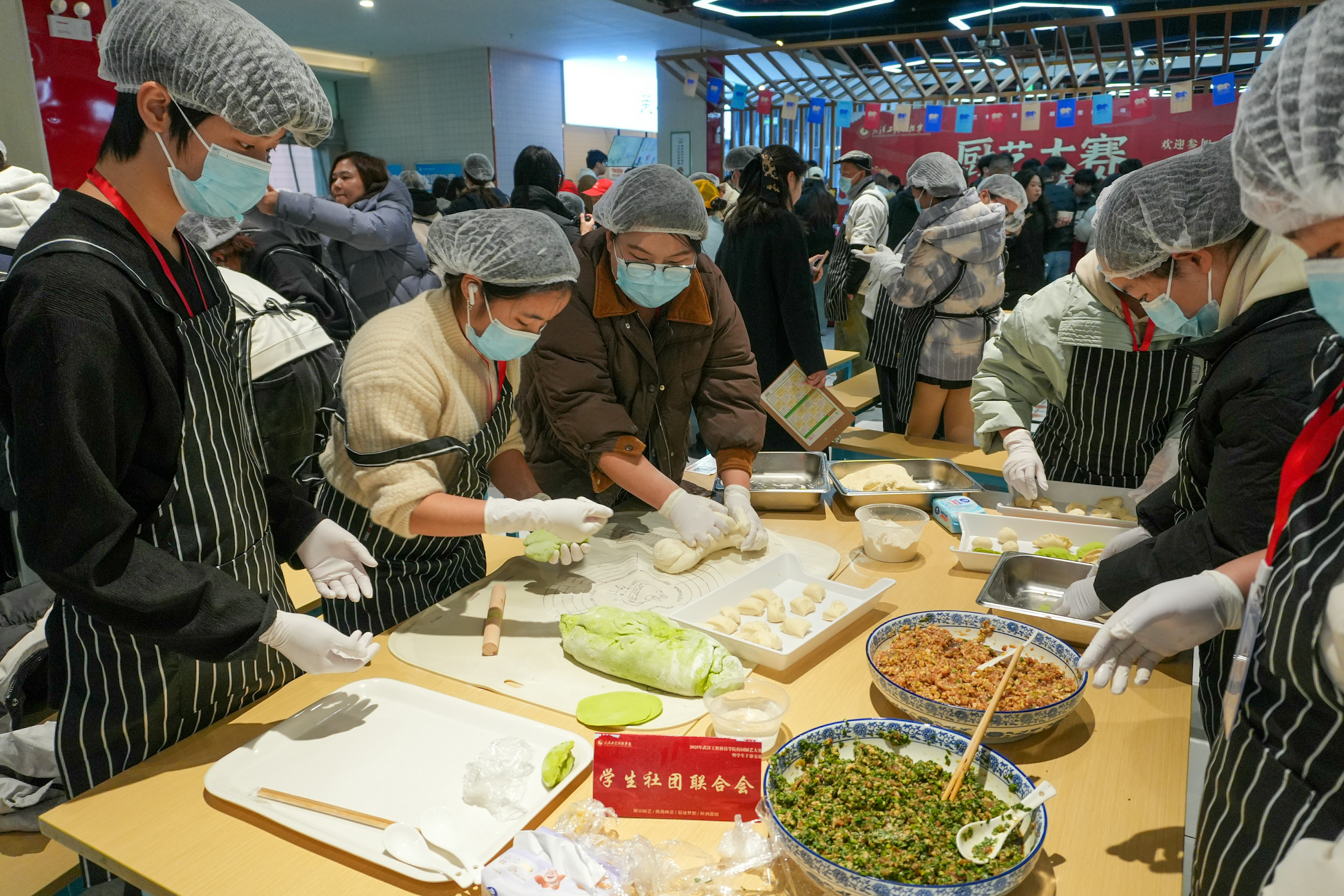 活动设置学生组与食堂组双赛道。学生组由校团委学生会、学生社团联合会、长江国际公益协会、大学生创新创业协会、校融媒体中心、校园维护学生自律委员会组成六支学生代表队伍,在限定时间内协作完成饺子、花馍等面食制作。食堂组则为学校三大食堂代表队,精心烹制出松鼠桂鱼、蒜香排骨、东坡肉、翡翠白玉卷、金汤赛熊掌等特色菜,更有圣诞快乐、牛气冲天、大鹏展翅等寓意吉祥的创意菜,二十四道菜品涵盖川湘粤等多地风味,锅铲起落间沉淀着后厨工作人员的岁月匠心。