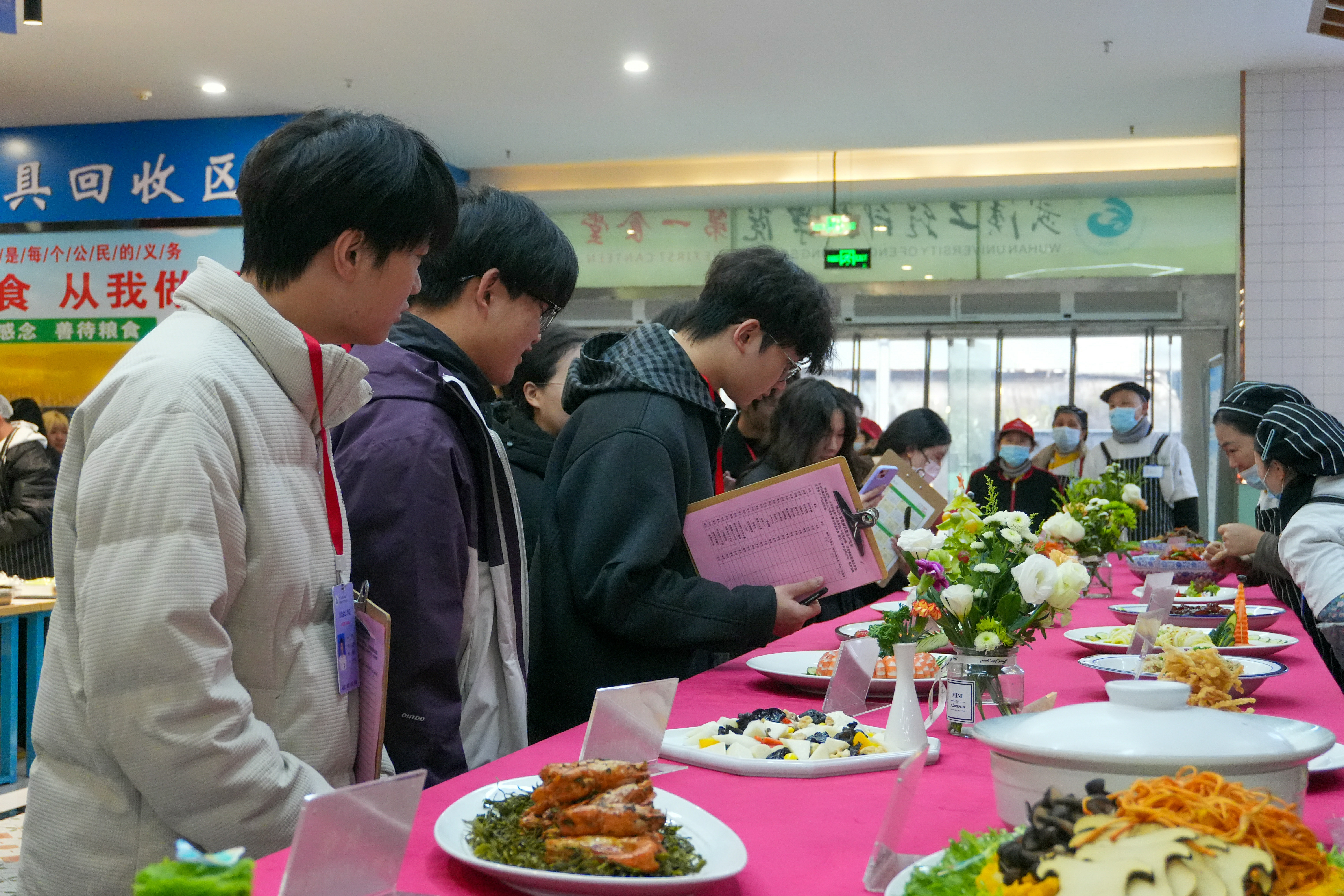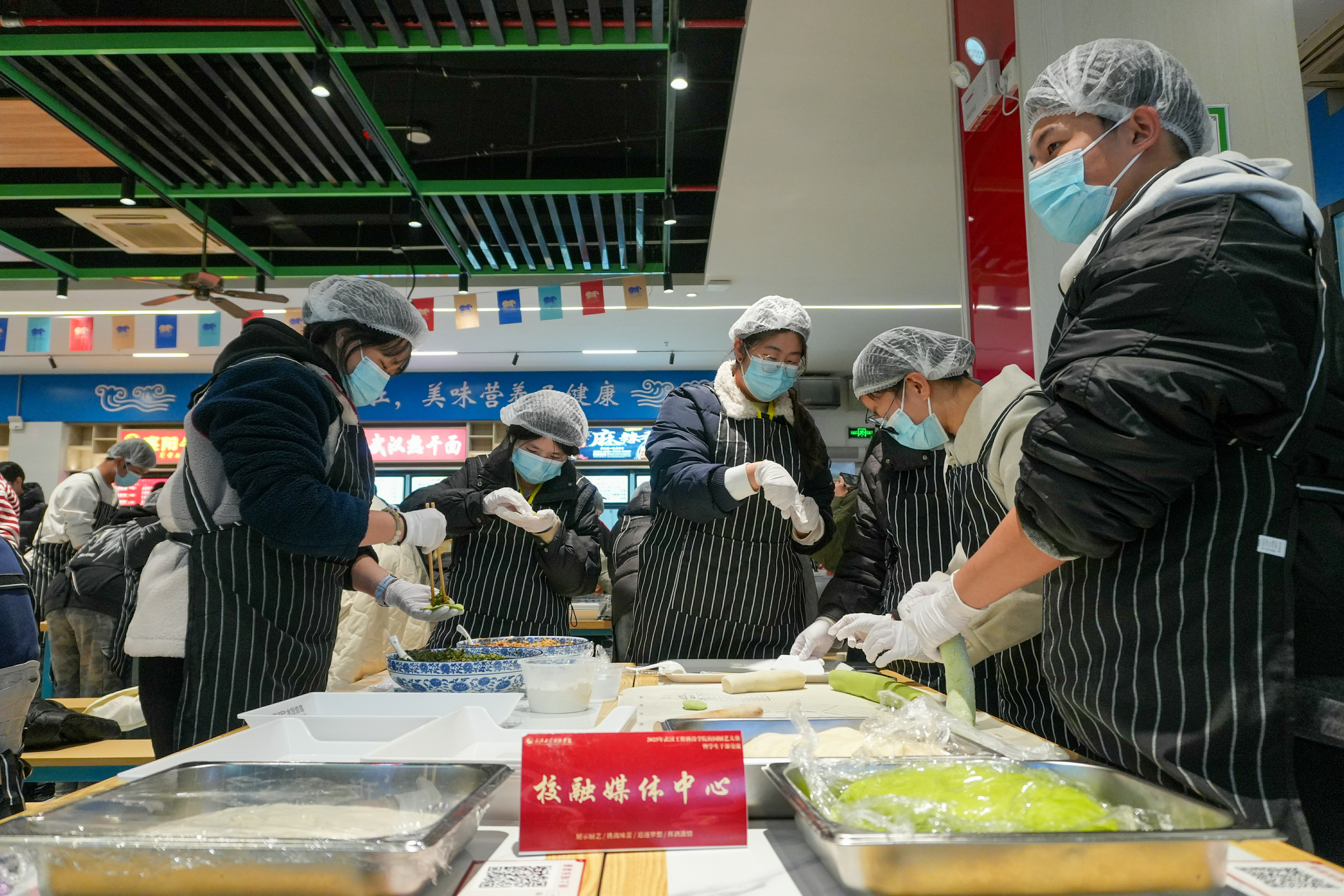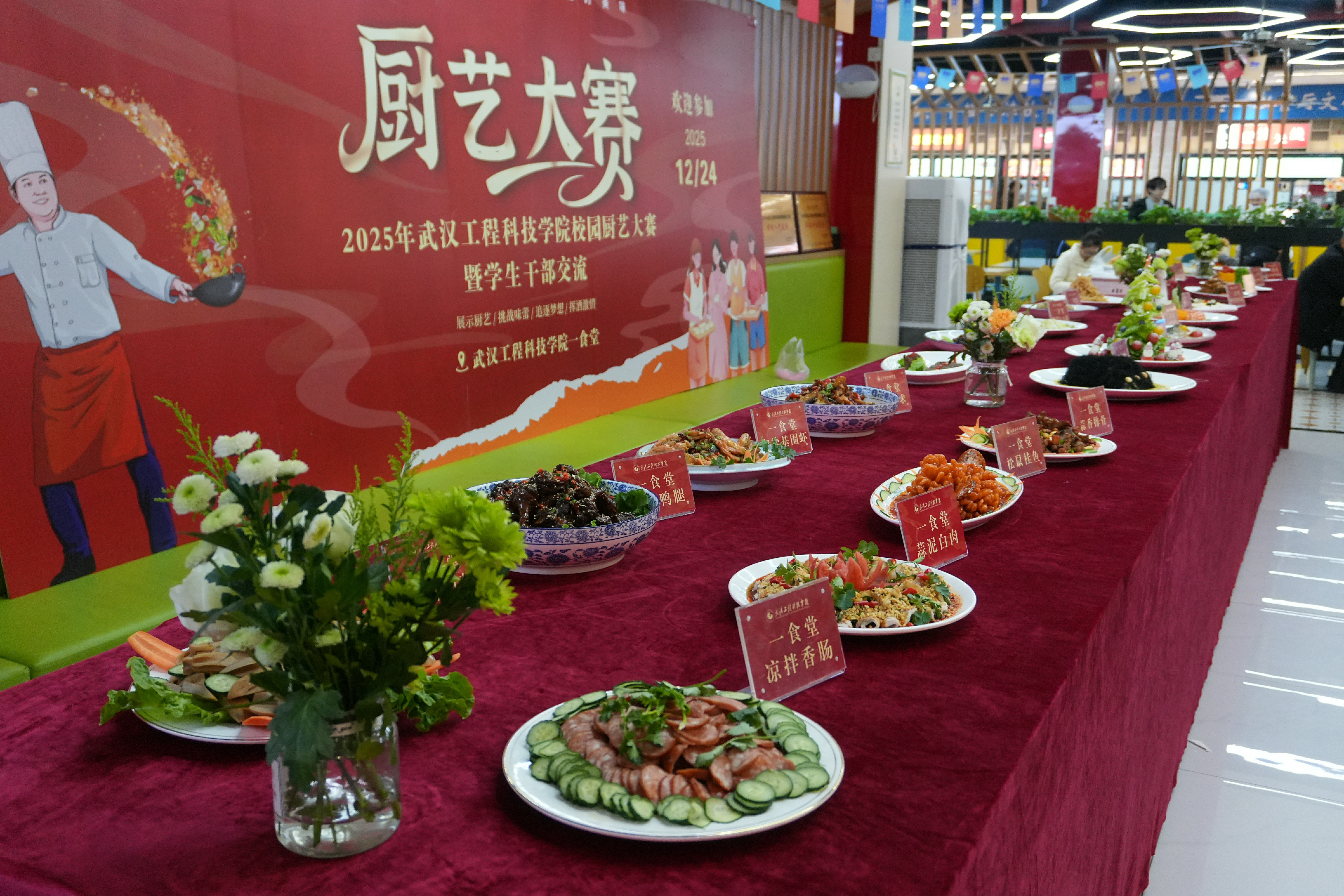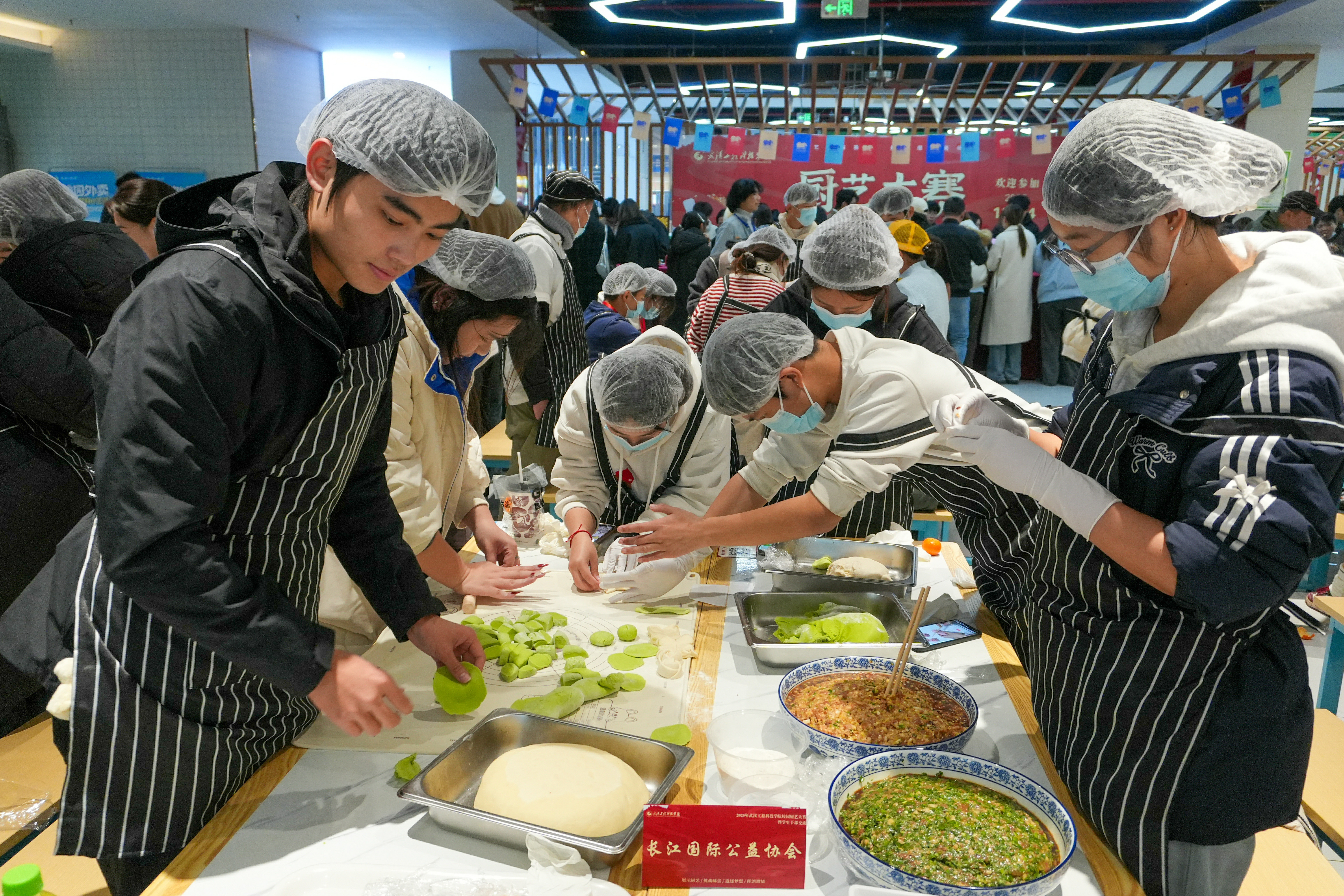 活动设置学生组与食堂组双赛道。学生组由校团委学生会、学生社团联合会、长江国际公益协会、大学生创新创业协会、校融媒体中心、校园维护学生自律委员会组成六支学生代表队伍,在限定时间内协作完成饺子、花馍等面食制作。食堂组则为学校三大食堂代表队,精心烹制出松鼠桂鱼、蒜香排骨、东坡肉、翡翠白玉卷、金汤赛熊掌等特色菜,更有圣诞快乐、牛气冲天、大鹏展翅等寓意吉祥的创意菜,二十四道菜品涵盖川湘粤等多地风味,锅铲起落间沉淀着后厨工作人员的岁月匠心。