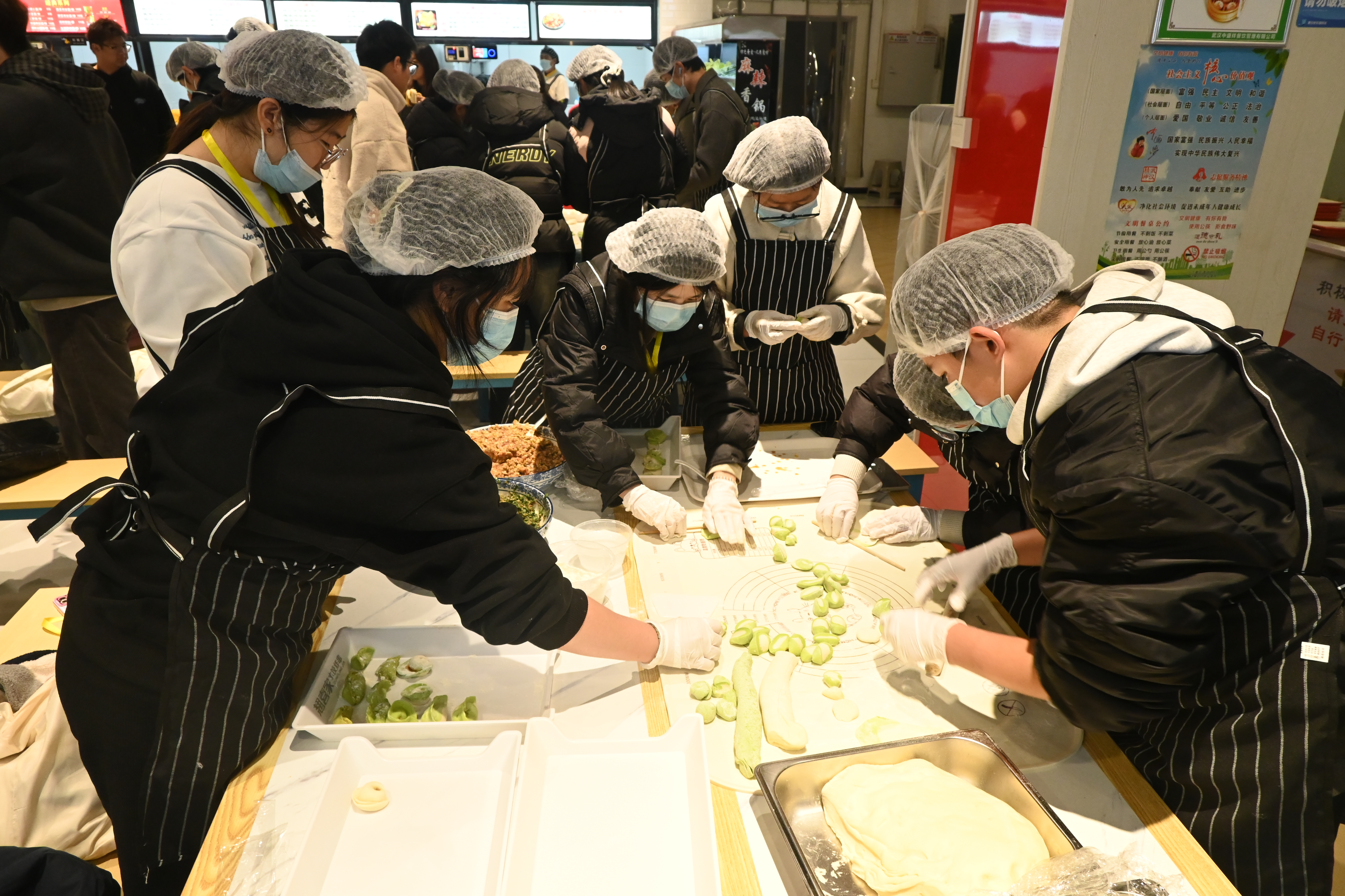 比赛现场精彩纷呈,暖意融融。同学们揉捏塑形、默契配合,将普通面团化为形态各异的饺子、花馍,指尖翻飞间尽显青春创意。