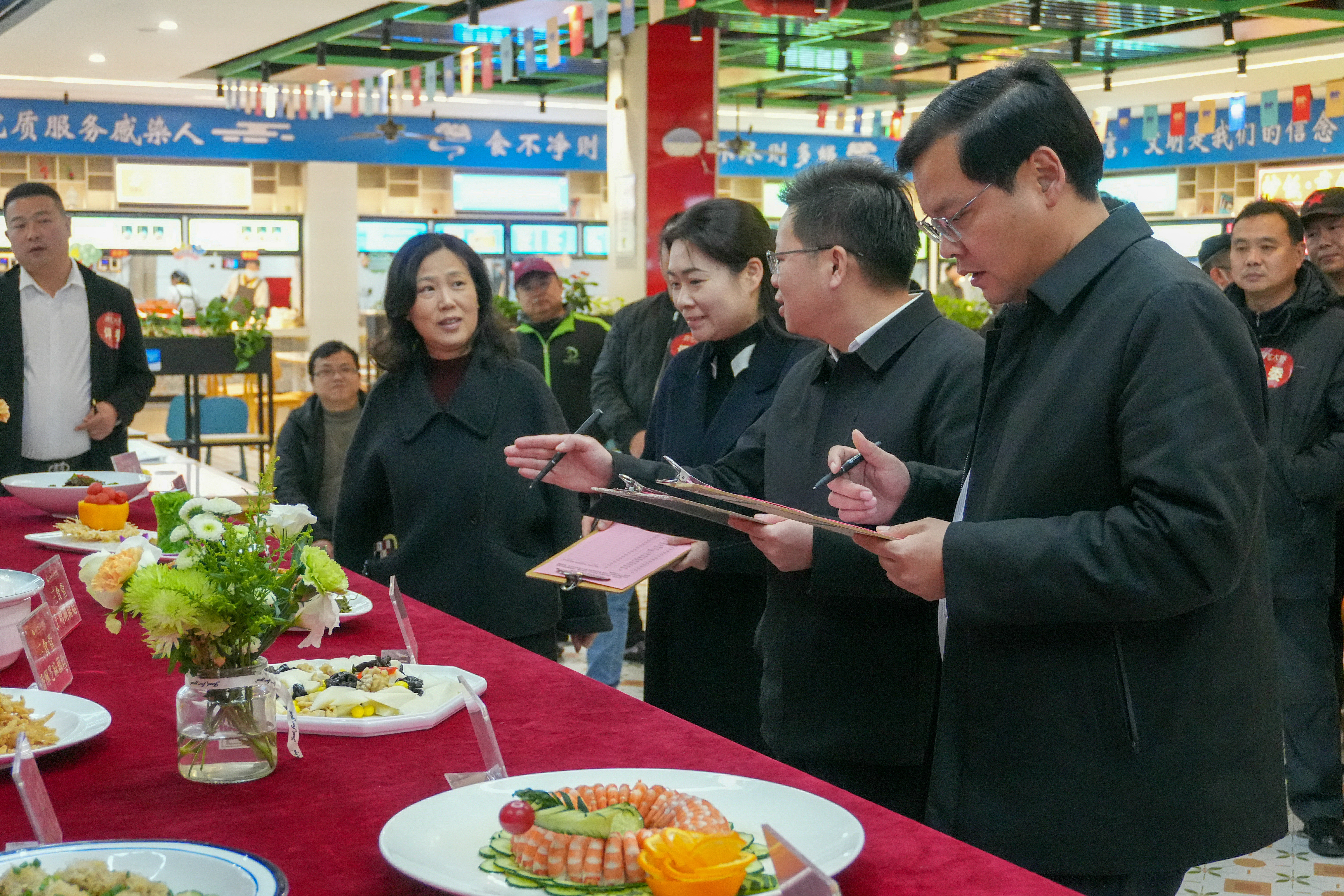 为进一步丰富校园文化生活,提升学生劳动实践能力与创新协作精神,搭建后勤服务系统与学生的高效沟通桥梁,12月24日,后勤保卫处在一食堂成功举办“我为师生办实事”第二届优质服务活动月系列之首届校园厨艺大赛。学校党委常委、校长助理郭万春,后勤保卫处处长易荣伟,校团委书记张瑾,后勤保卫处副处长周瑞出席活动,与师生评委及现场观众共同见证这场融合劳动教育与美育实践的校园文化盛宴。