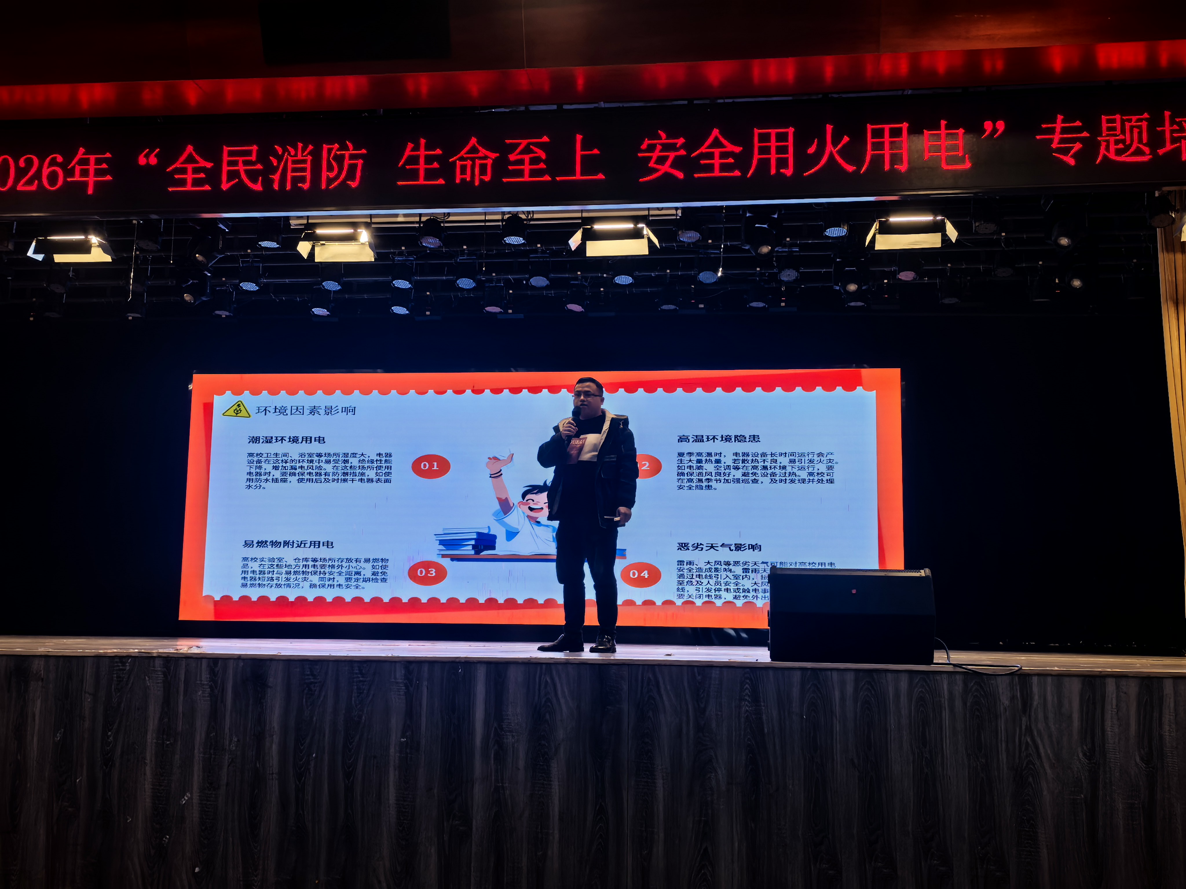 为深入贯彻《省教育厅关于加强教育系统高层建筑重大火灾风险隐患排查整治的通知》《全省教育系统冬春火灾除患攻坚“百日行动”工作方案》《关于召开全省教育系统岁末年初安全稳定工作专题视频调度会议的通知》等上级部门文件及会议精神,切实做好岁末年初校园安全稳定工作,1月9日,后勤保卫处在三号教学楼报告厅组织举办“全民消防 生命至上——安全用电用火”专题培训。后勤保卫处副处长周瑞、相关中心主管,全体楼宇管理员、安保人员、维修人员、餐饮及商业服务从业人员等200余人参训。本次培训由消防主管万汉峰主持。