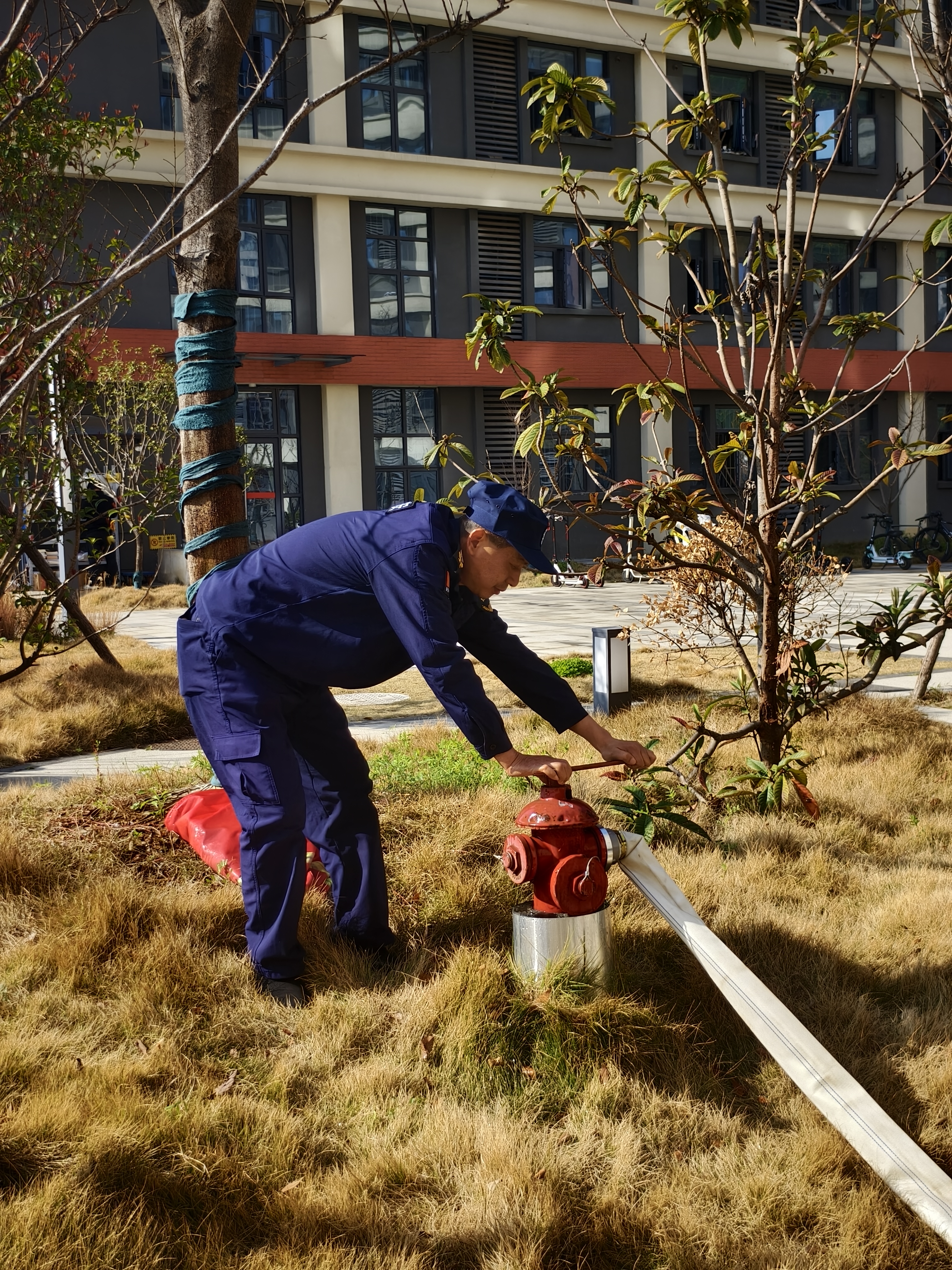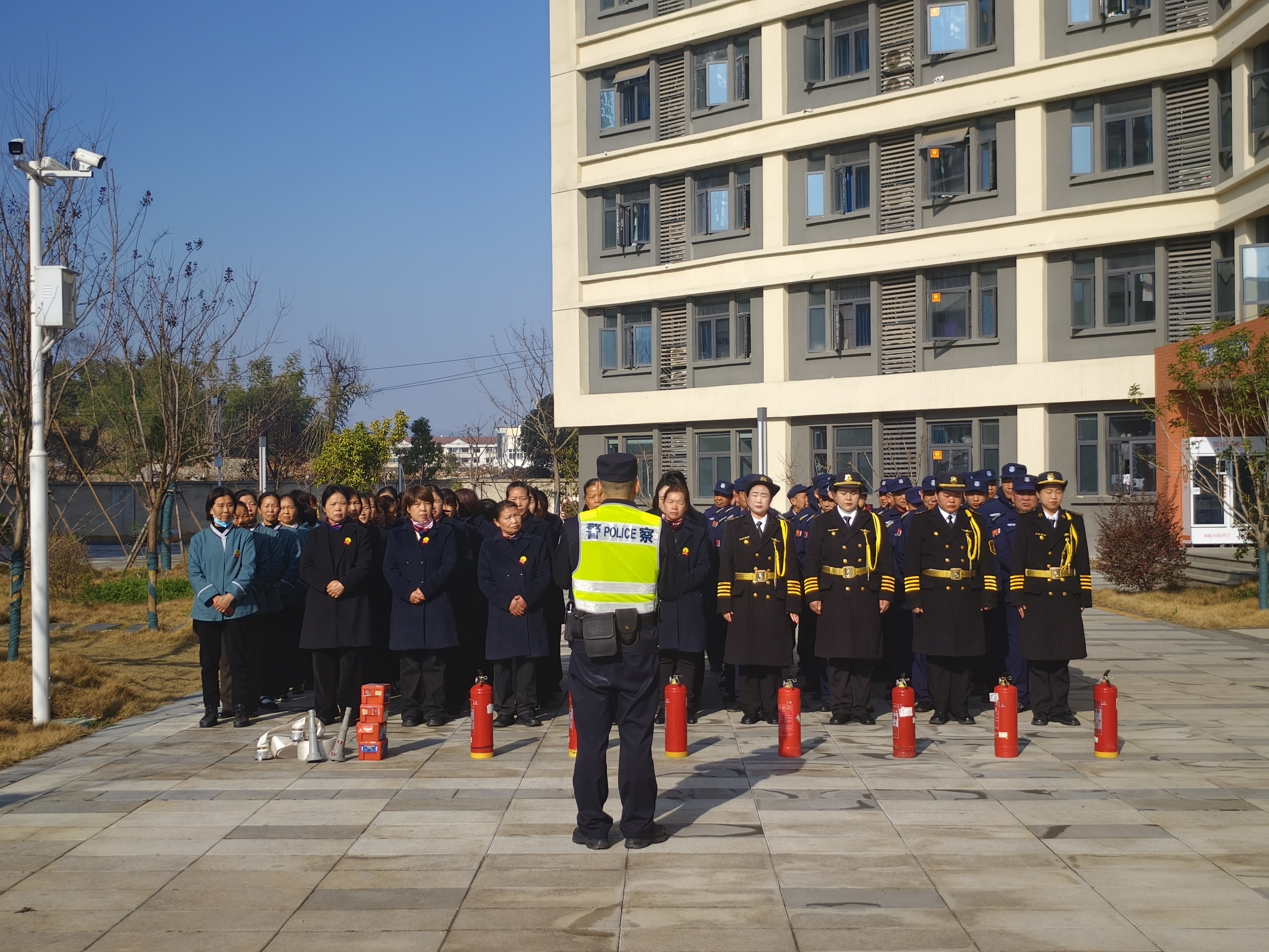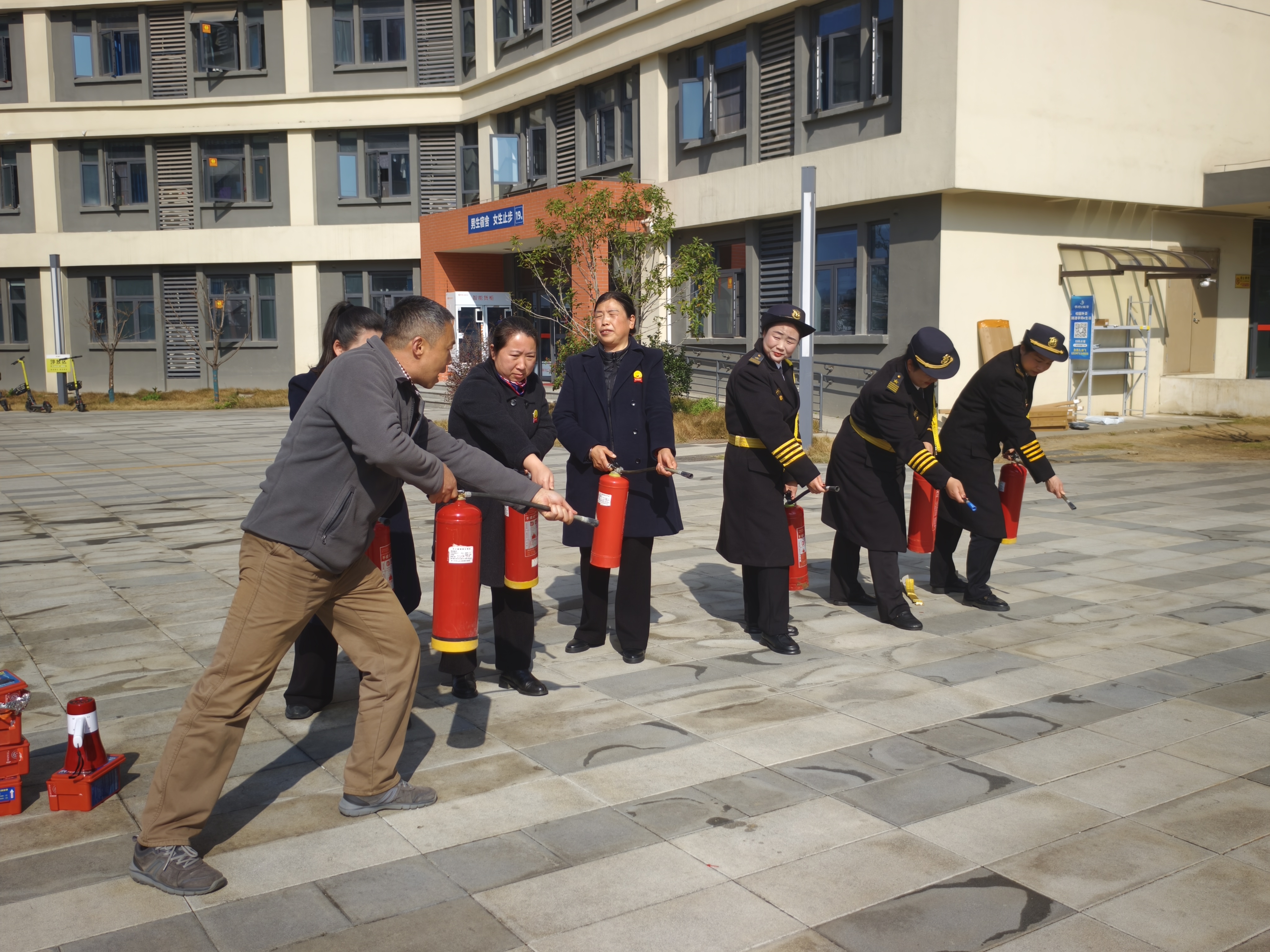 为深入贯彻落实《省教育厅关于切实抓好学校消防安全隐患整改的通知》及全省高校安全工作会议精神,进一步提升校园应急处置能力,3月11日,后勤保卫处联合武汉市公安局江夏分局纸坊街派出所在19栋学生宿舍南广场开展反恐防暴暨消防安全专项演练。学校楼宇管理员、安保人员共计80余人参与演练,以实战化训练夯实校园安全根基。
