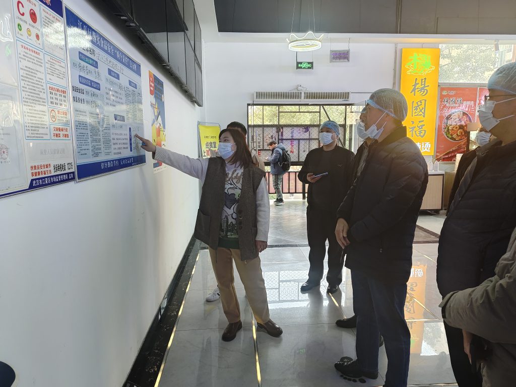 为加强学校食品安全管理工作,排查化解各类食品安全风险隐患,进一步提升学校食品质量安全水平,3月8日,武汉市包保单位市城管委相关领导一行,莅临我校开展了食品安全包保调研指导与检查工作。学校校长助理郭万春、后勤保卫处处长易荣伟、副处长周瑞及商业中心员工陪同检查。