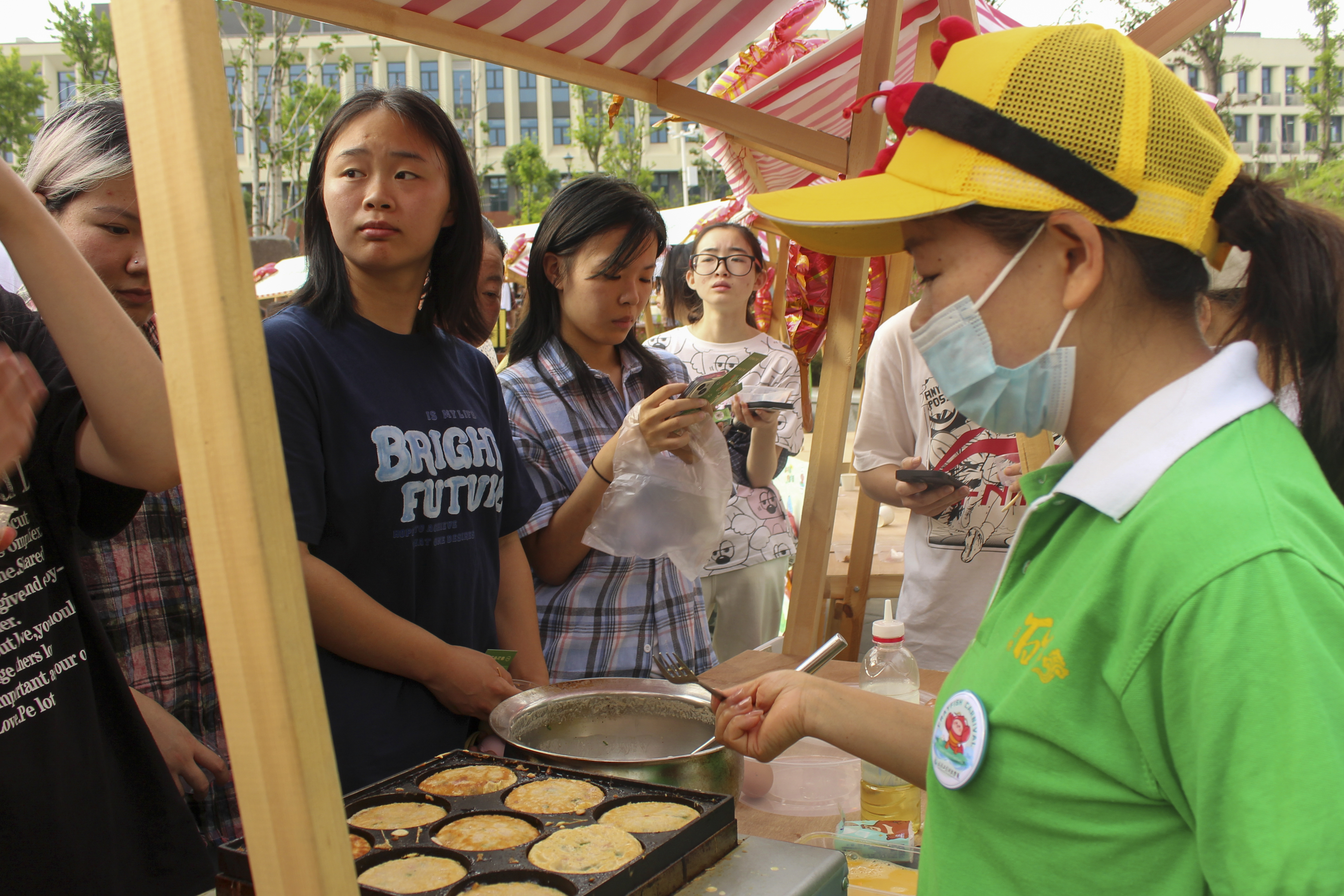 各色口味小龙虾、精致楚菜、国际美食、鲜果饮品琳琅满目,香气四溢;师生们凭券兑换,大快朵颐,尽享舌尖上的盛宴。